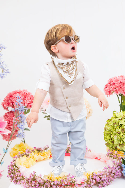 Ανακαλύψτε την μοναδική συλλογή μας από βαπτιστικά ρούχα για αγόρια. Κάθε κομμάτι διακρίνεται για την ανυπέρβλητη ποιότητά του και τις μοναδικές λεπτομέρειές του, ενώ προσφέρουμε μια πληθώρα επιλογών για να βρείτε το απόλυτο στυλ για τον μικρό σας πρίγκιπα.
