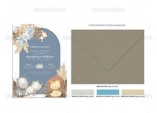 Για όλους τους γονείς που ονειρεύονται έναν εκλεπτυσμένο και γλυκό τρόπο για να προσκαλέσουν τους αγαπημένους τους σε αυτή την ξεχωριστή στιγμή, το belavie είναι εδώ για να κάνει τα όνειρά σας πραγματικότητα! Ανακαλύψτε μια μοναδική συλλογή προσκλητηρίων για αγοράκια που συνδυάζουν την κομψότητα με τη γλυκύτητα, δημιουργώντας την τέλεια ατμόσφαιρα για την εκδήλωσή σας. Από απαλά χρώματα και ζωηρά σχέδια μέχρι λεπτομέρειες που κλέβουν την καρδιά, κάθε προσκλητήριο είναι μια μοναδική δημιουργία που αντανακλά τη χαρά και την αγάπη που νιώθετε για το μικρό σας παιδί.