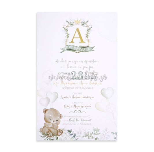 Προσκλητήριο βάπτισης αγόρι αρκουδάκι 1865 No105Κ