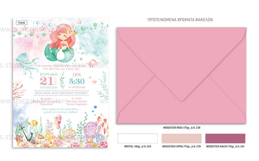 Προσκλητήριο βάπτισης κορίτσι γοργόνα TS449