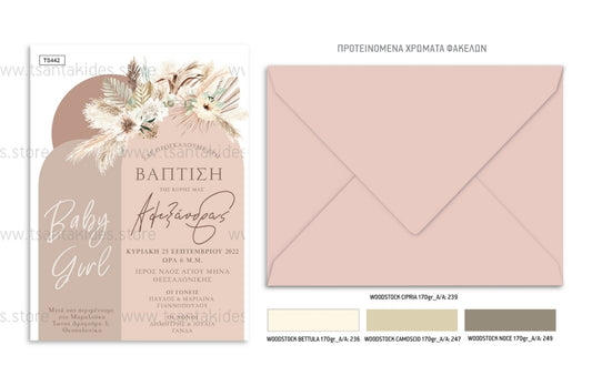 Προσκλητήριο βάπτισης κορίτσι boho TS442