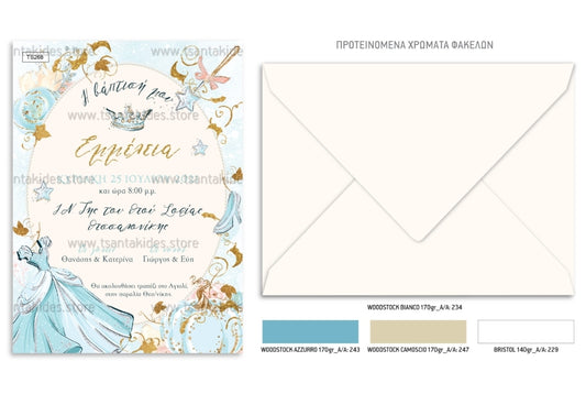 Προσκλητήριο βάπτισης κορίτσι Σταχτοπούτα TS268