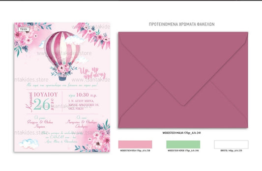 Προσκλητήριο βάπτισης κορίτσι αερόστατο TS101