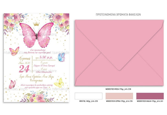 Προσκλητήριο βάπτισης κορίτσι πεταλούδα TS184