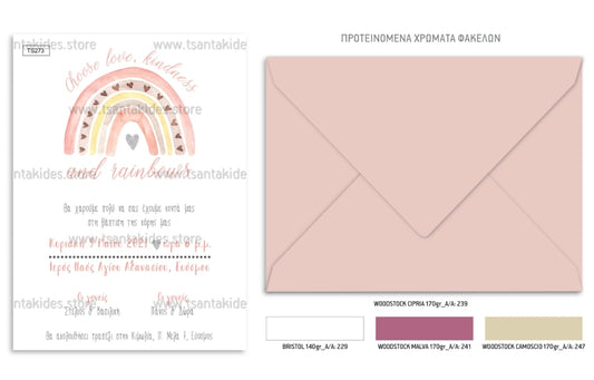 Προσκλητήριο βάπτισης κορίτσι ουράνιο τόξο TS273