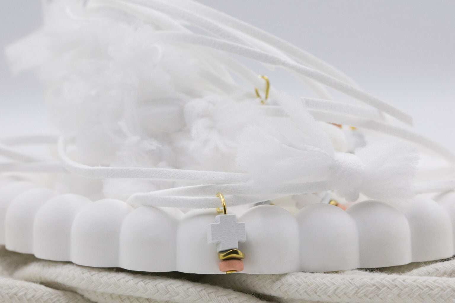 Μαρτυρικό βραχιόλι με σταυρό ξύλινο και κορδόνι suede λευκό. Οι φωτογραφίες έχουν υποστεί επεξεργασία και τα χρώματα ίσως να διαφέρουν λίγο στην πραγματικότητα. Η τιμή αφορά συσκευασία 50 τεμαχίων.