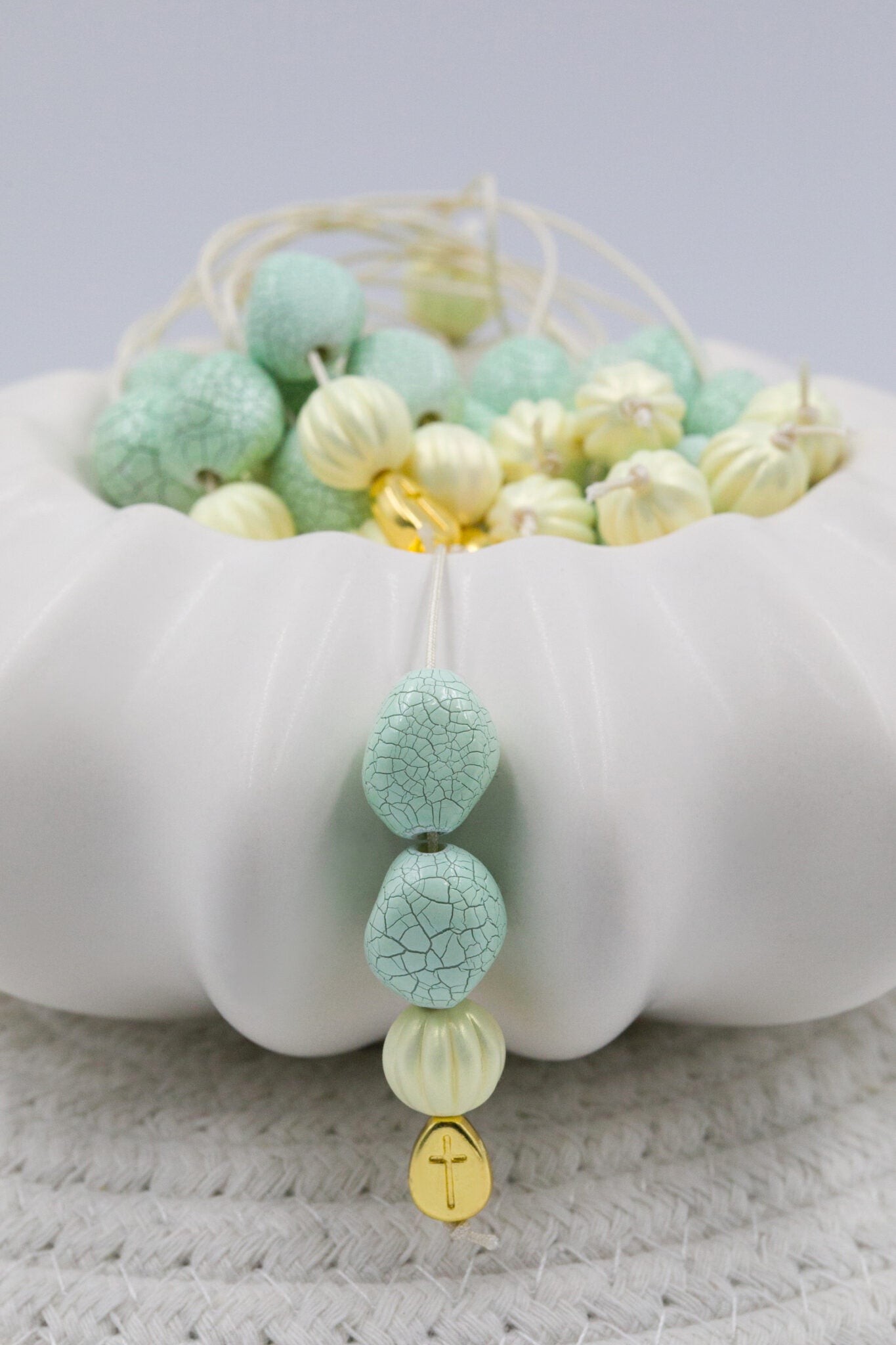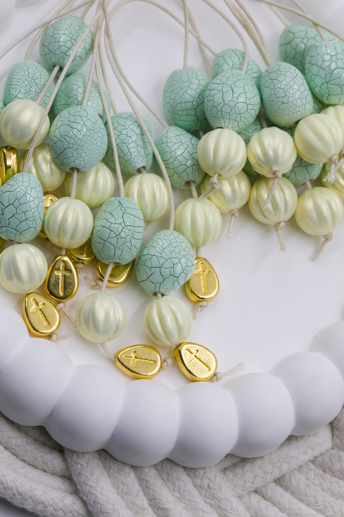 Μαρτυρικό μπεγλέρι με επιχρυσωμένο σταυρό χάντρες σε χρυσή απόχρωση και βεραμάν. Οι φωτογραφίες έχουν υποστεί επεξεργασία και τα χρώματα ίσως να διαφέρουν λίγο στην πραγματικότητα. Η τιμή αφορά συσκευασία 50 τεμαχίων.