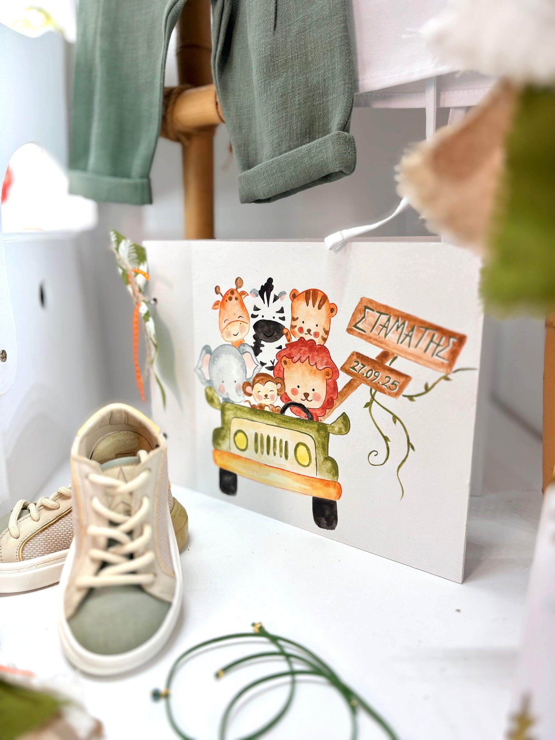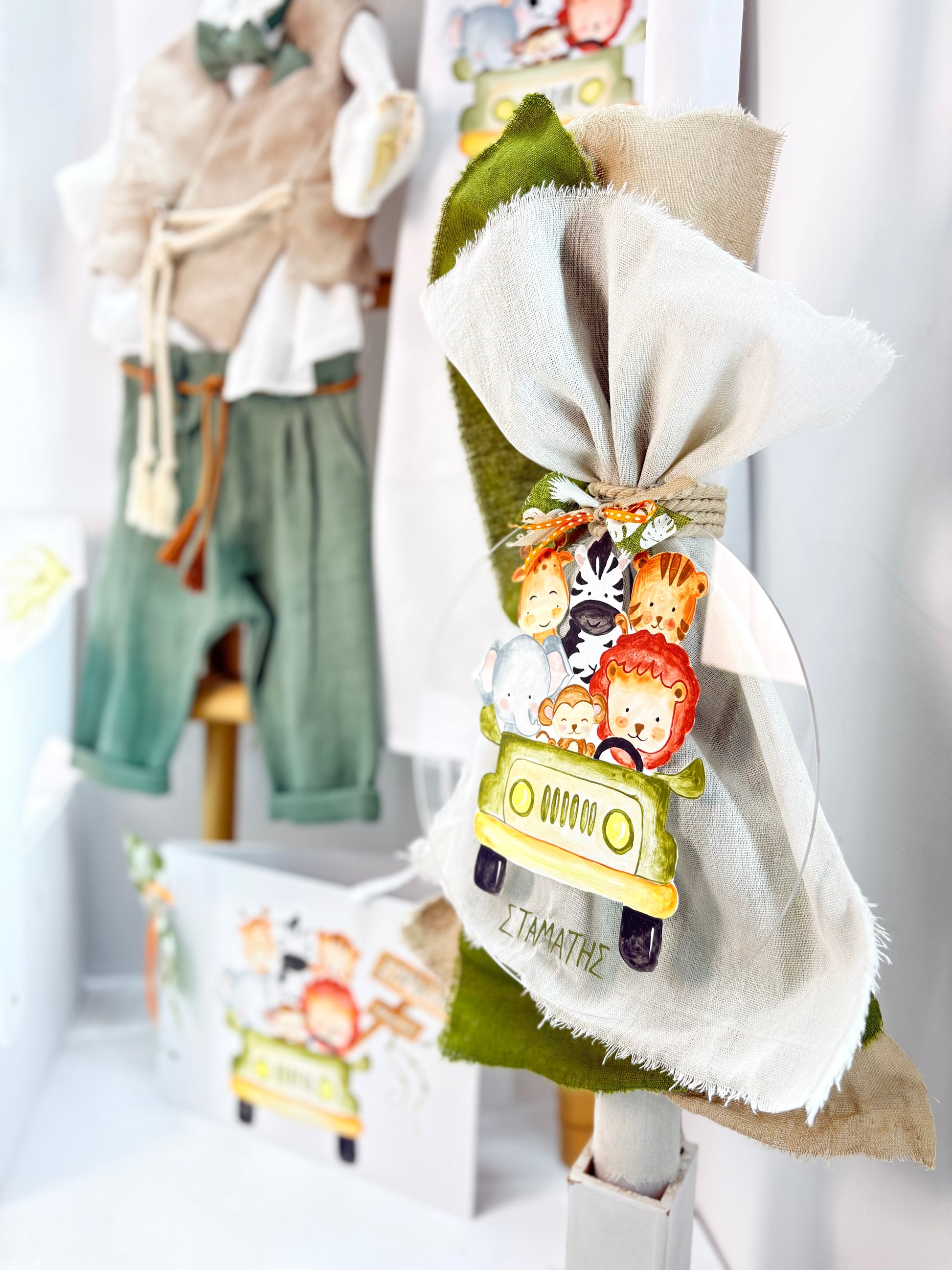 Το πιο χαρούμενο βαπτιστικό πακέτο έφτασε, γεμάτο χρώματα, ζωάκια και περιπέτεια! 🐵🦒 Το χειροποίητο τζιπ μεταφέρει λιοντάρια, ζέβρες και ελεφαντάκια, έτοιμα να γίνουν η πιο όμορφη ανάμνηση της βάπτισης. ✨