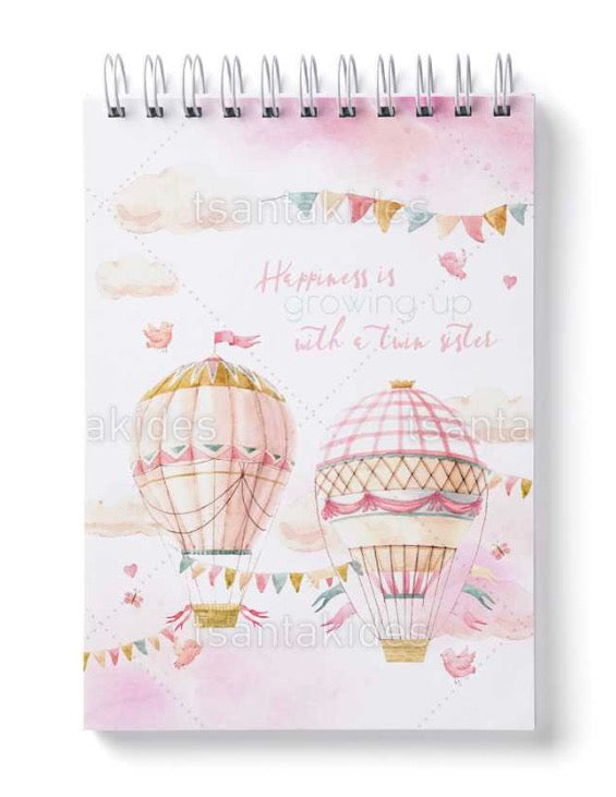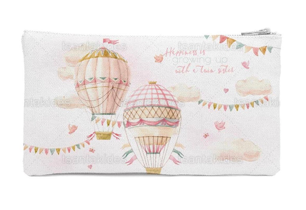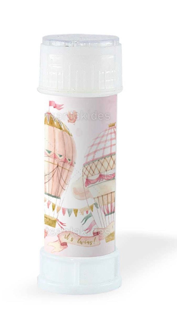 Προσκλητήριο βάπτισης για δίδυμα με θέμα Baby Girls Hot Air Balloon.